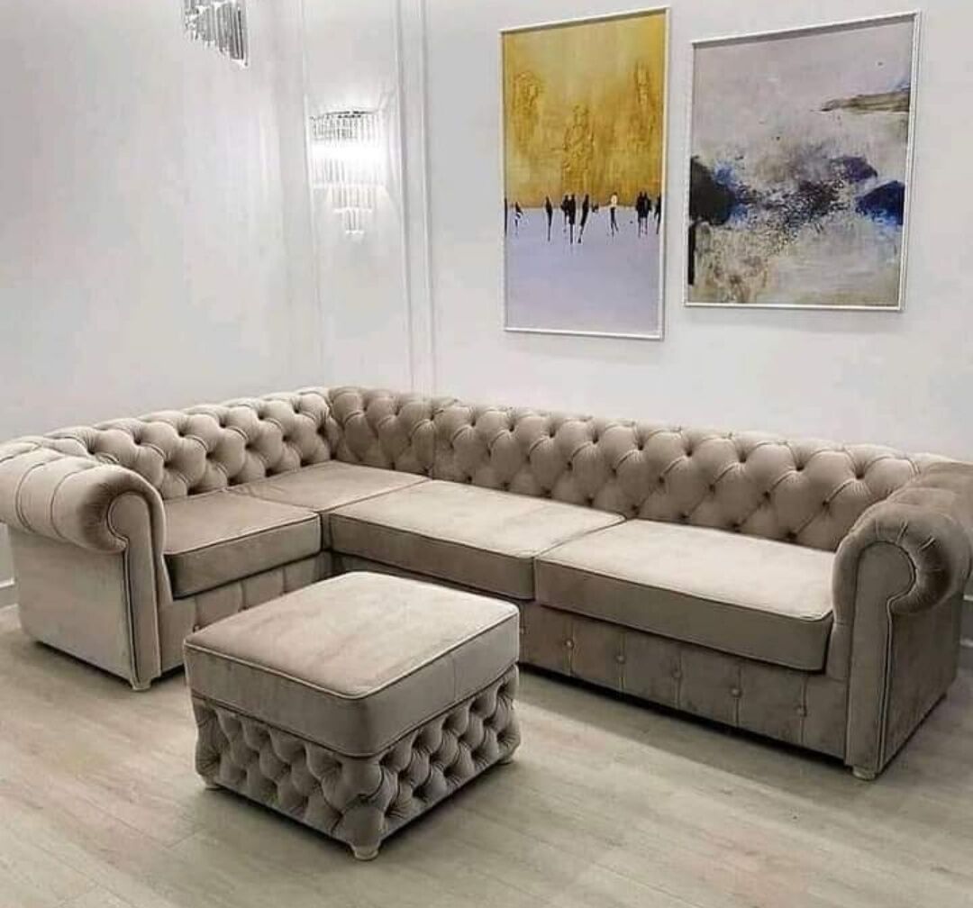 Chesterfield sofas are defined by their large, rolled arms that are the same height as the back.