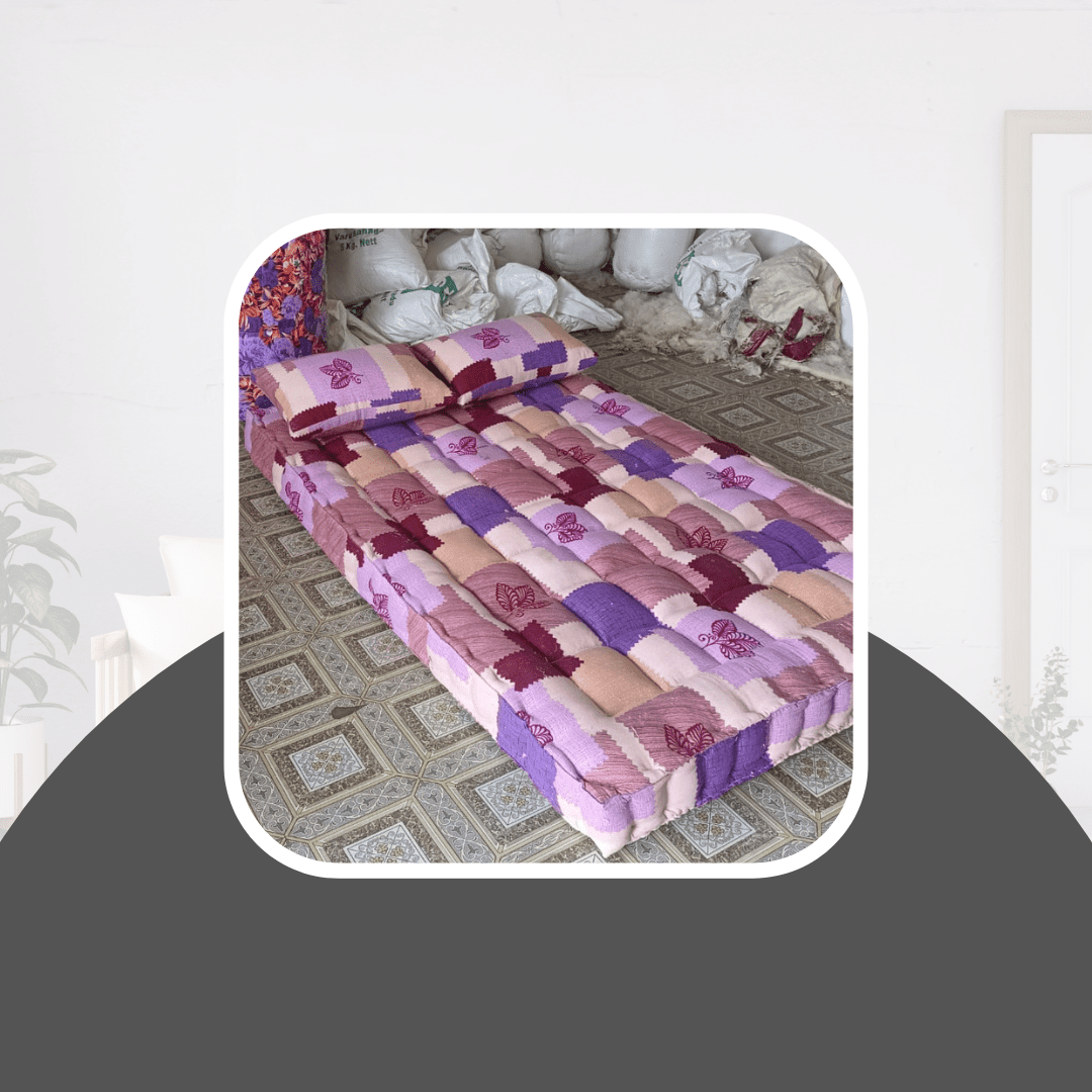 MATTRESS is a fabric case filled with resilient material (such as cotton, hair, feathers, foam rubber, or an arrangement of coiled springs)